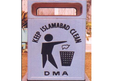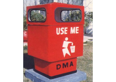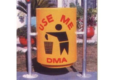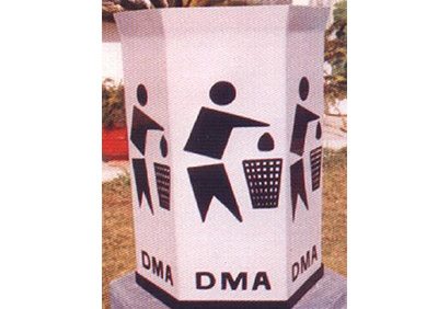 M.S Frame included for embedment in concrete. Top opening for garbage exit. Logo & Message Printed.